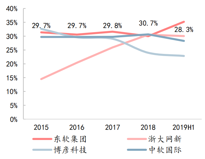 图4:中国服务外包龙头企业毛利率情况