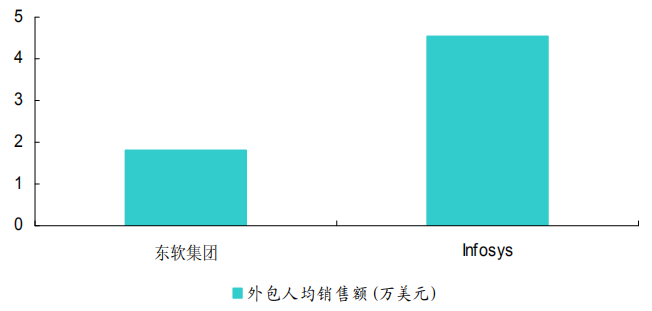 图12:东软集团与 Infosys 外包人均销售额比较